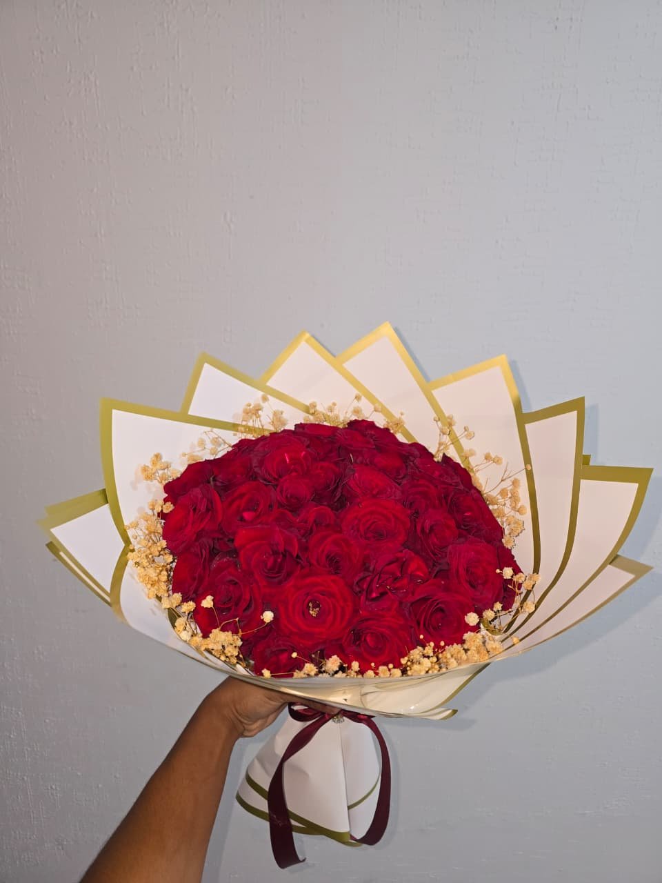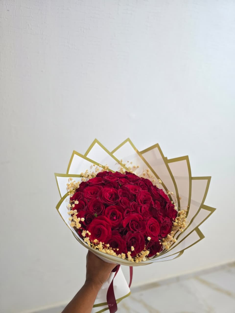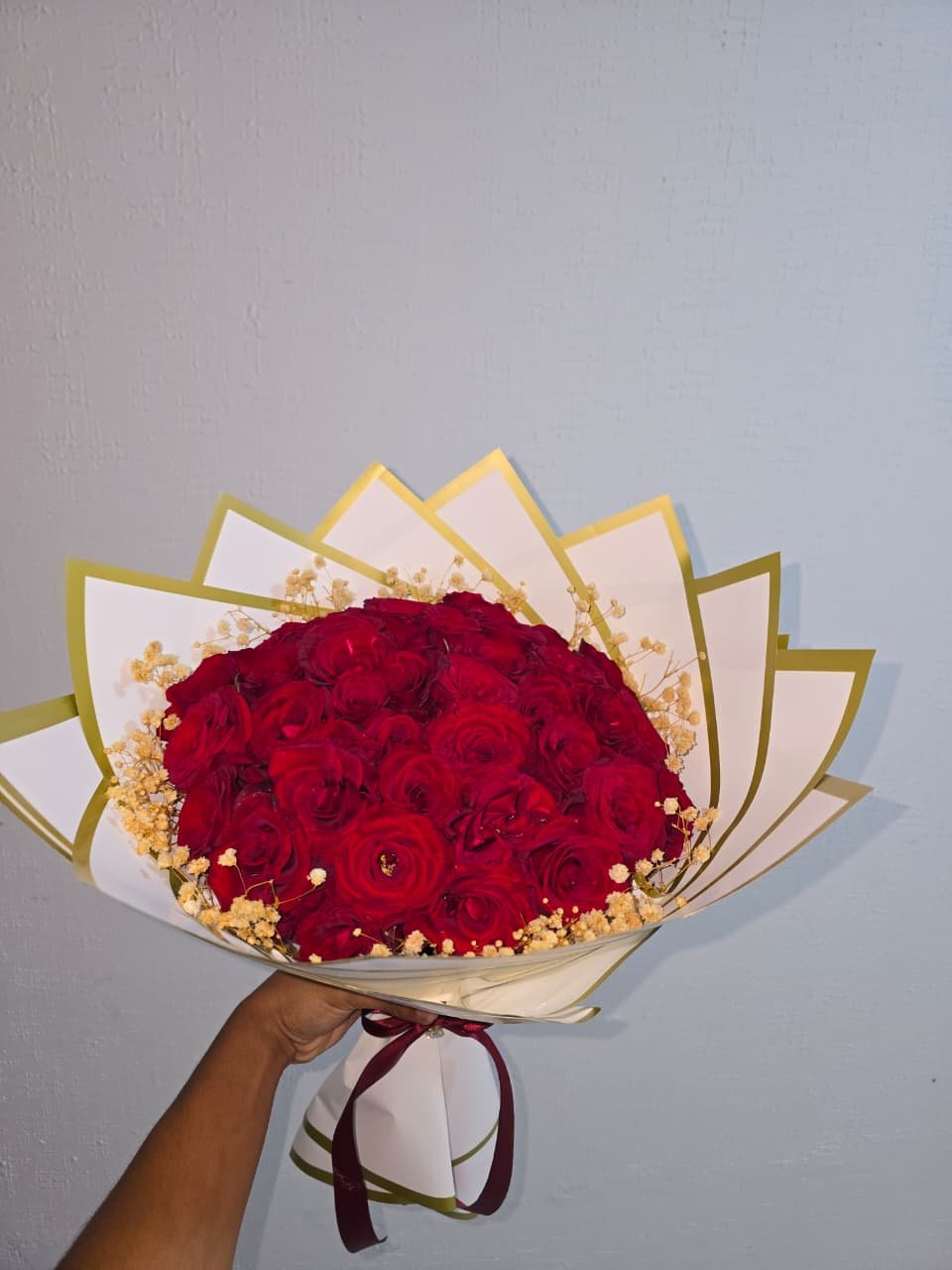 Ce bouquet moyen capture l’essence de l’amour et de la passion avec ses roses rouges éclatantes, soigneusement sélectionnées pour leur fraîcheur et leur beauté. Chaque rose est disposée avec élégance, créant un équilibre parfait entre volume et raffinement. Idéal pour offrir à un être cher lors d’un anniversaire, d’une Saint-Valentin ou simplement pour dire « je t’aime », ce bouquet exprime la passion, l’élégance et l’émotion pure.