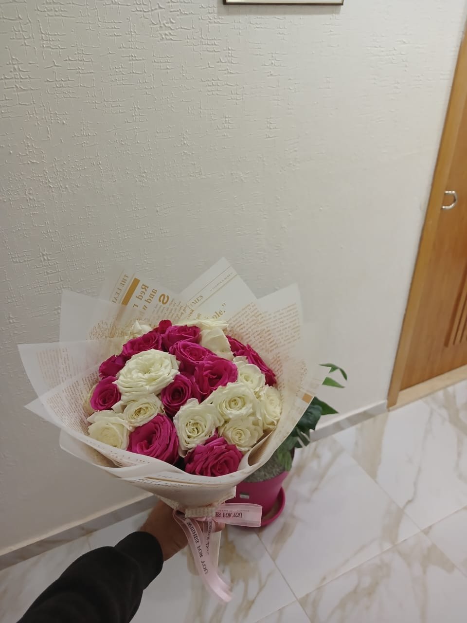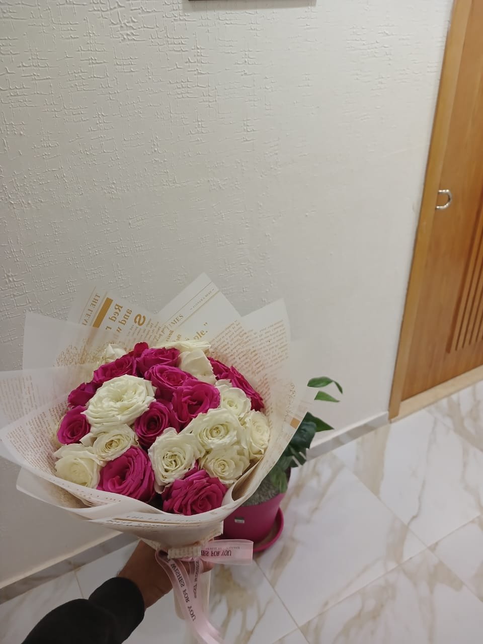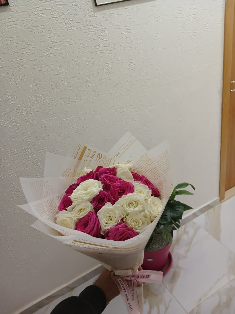 Un mélange élégant de roses blanches et roses roses, symbolisant la pureté et la tendresse. Ce bouquet raffiné est parfait pour célébrer des moments doux et mémorables.
